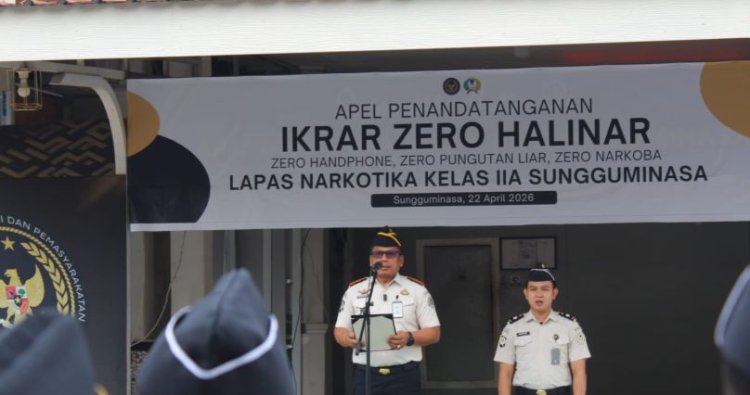 GOWA — Komitmen pemberantasan praktik terlarang di lingkungan pemasyarakatan kembali ditegaskan Kepala Lembaga Pemasyarakatan Narkotika Kelas IIA Sungguminasa, Gunawan, dalam kegiatan penandatanganan ikrar Zero Halinar, Rabu (22/4/2026).